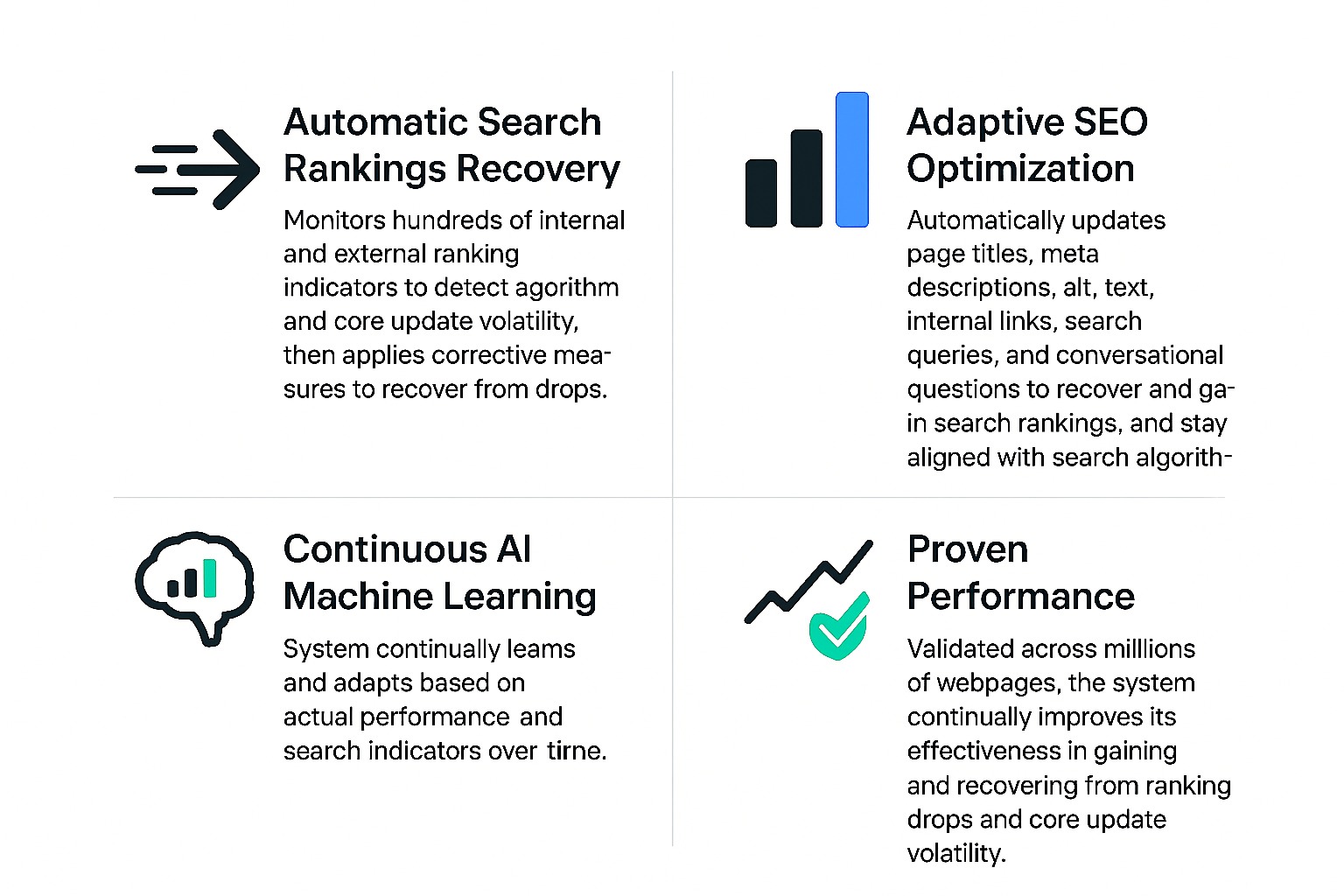 However, search engine rankings and AI-driven visibility depend on many internal and external factors, and performance or recovery cannot be guaranteed. The continuous application of NytroSEO’s Adaptive SEO automation, though, often results in positive ranking improvements and recovery in dynamic search environments